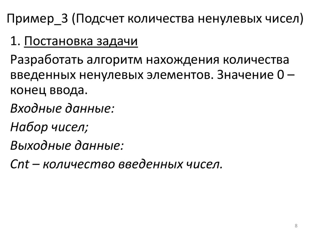 Пример_3 (Подсчет количества ненулевых чисел)1. Постановка задачи