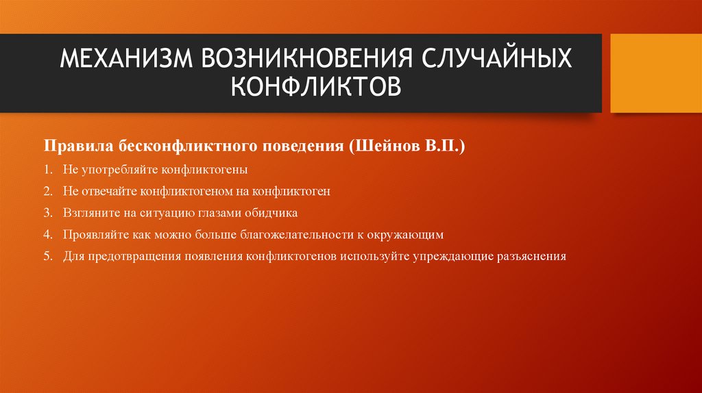 МЕХАНИЗМ ВОЗНИКНОВЕНИЯ СЛУЧАЙНЫХКОНФЛИКТОВ