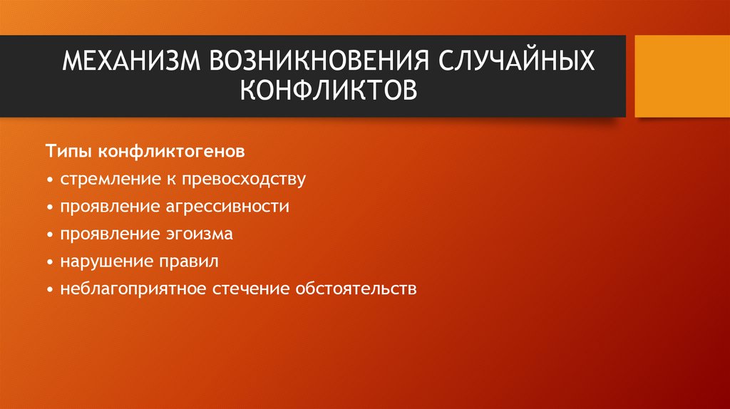 Основа возникновения случайных конфликтов - конфликтогены