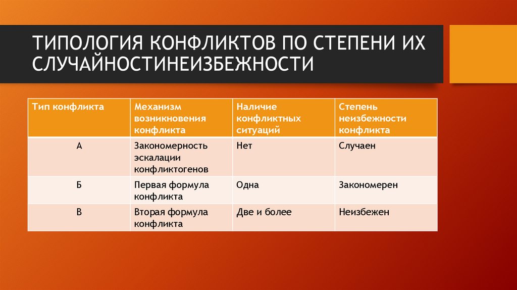 ТИПОЛОГИЯ КОНФЛИКТОВ ПО СТЕПЕНИ ИХСЛУЧАЙНОСТИНЕИЗБЕЖНОСТИ
