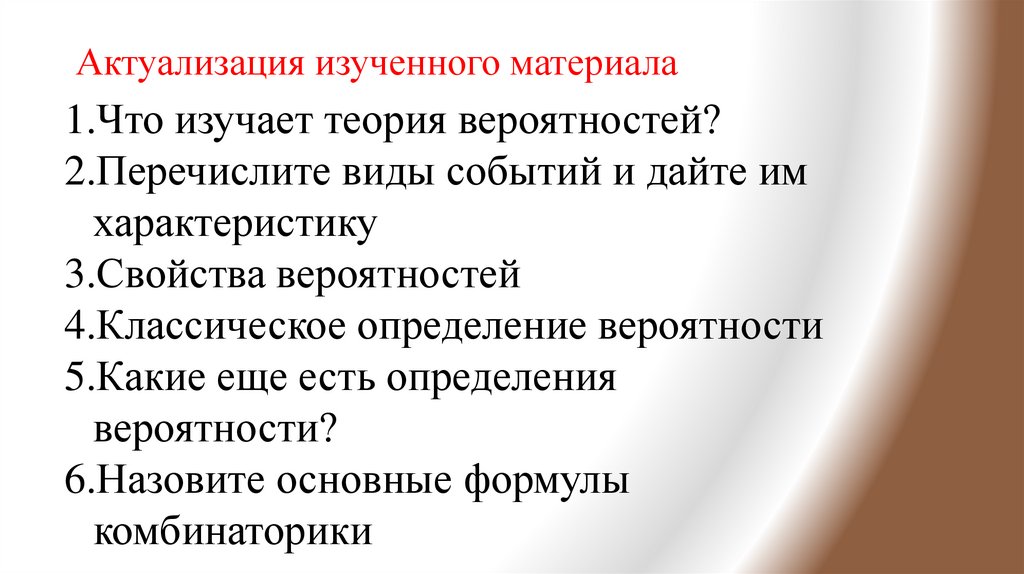 Теория вероятностей. Основные определения. Классическое определение вероятности