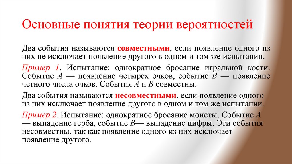 Основные понятия теории вероятностей. Классическое определение вероятности и ей свойства