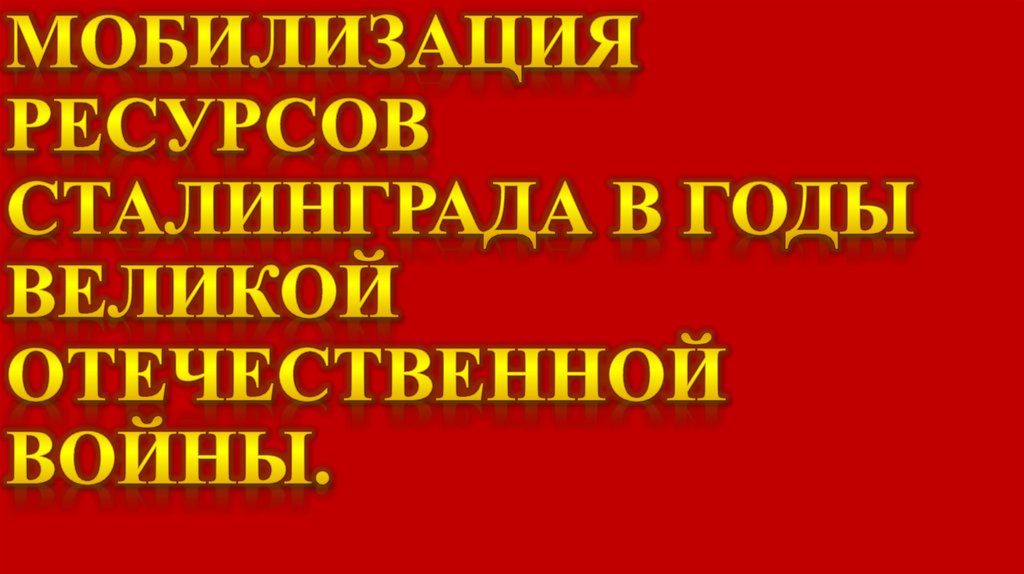 Мобилизация ресурсов Сталинграда в годы Великой Отечественной войны.