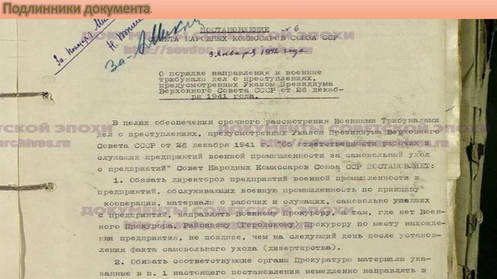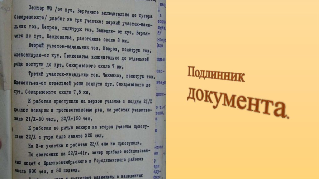 6.  Строительство оборонительного рубежа. Подлинник документа.