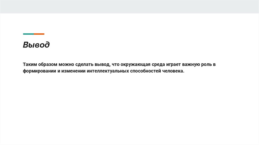 ВыводТаким образом можно сделать вывод, что окружающая среда играет важную роль в