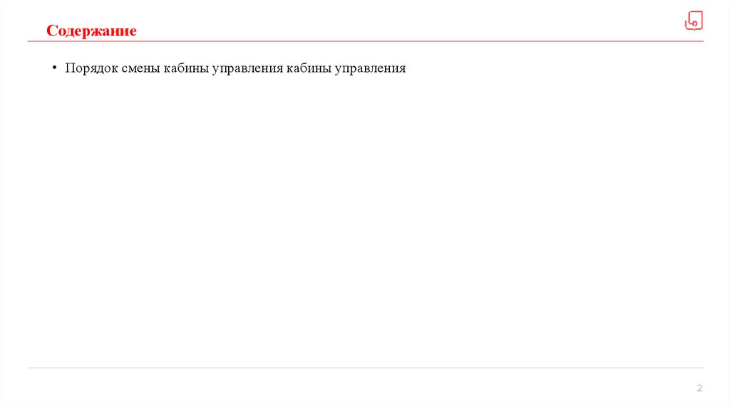 Содержание• Порядок смены кабины управления кабины управления