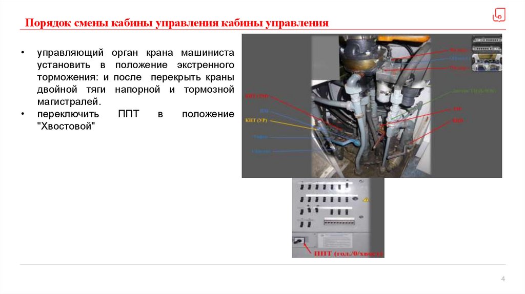 Порядок смены кабины управления кабины управленияуправляющий орган крана машиниста