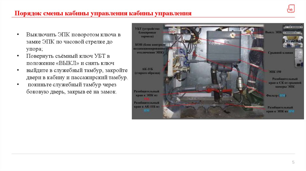 Порядок смены кабины управления кабины управленияВыключить ЭПК поворотом ключа в