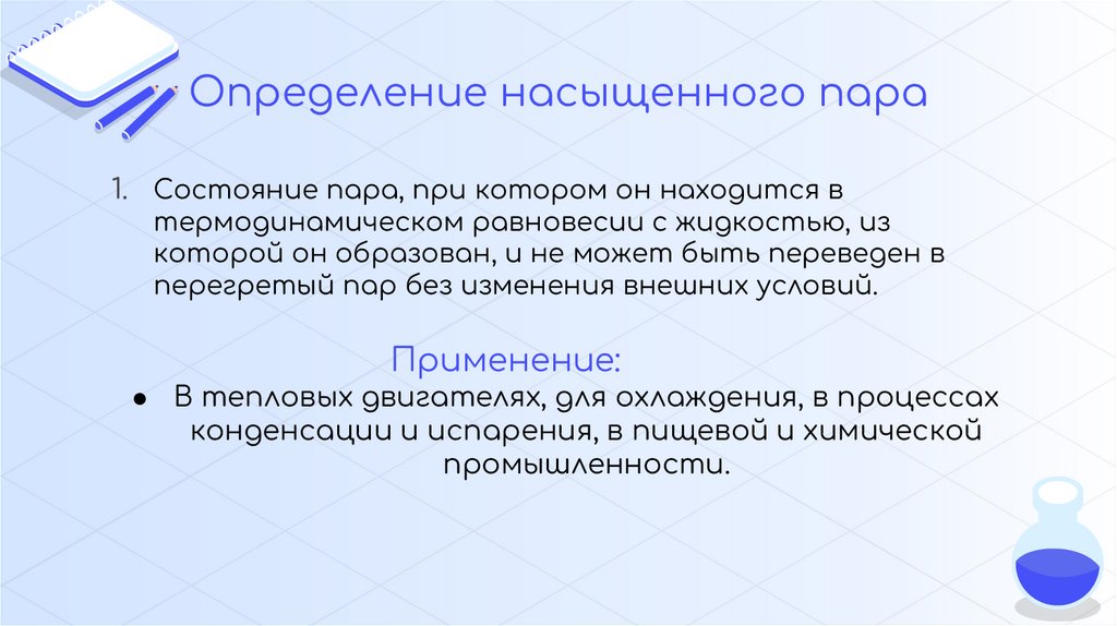 Определение насыщенного пара1. Состояние пара, при котором он находится в