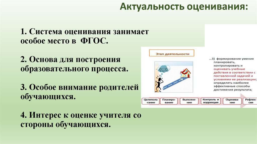 Актуальность оценивания:1. Система оценивания занимает