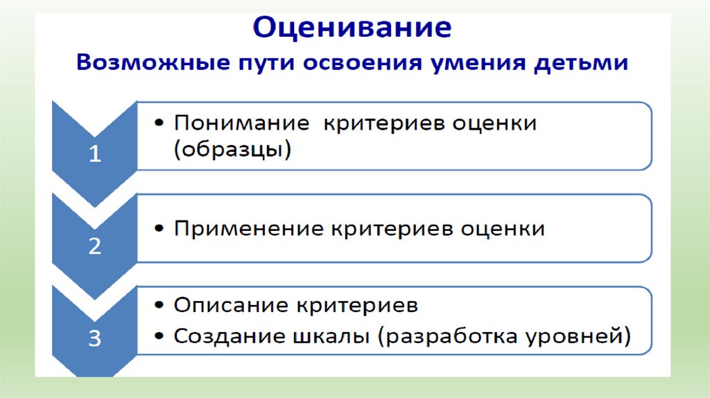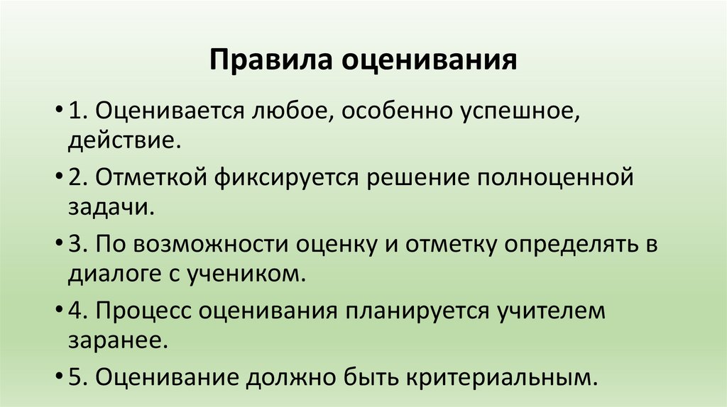 • 5. Оценивание должно быть критериальным.