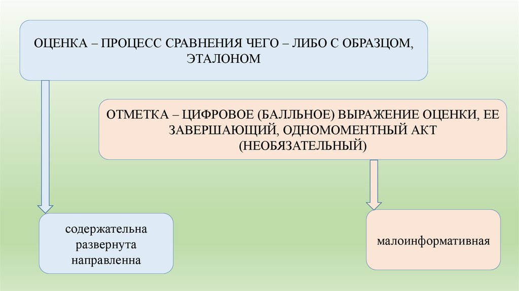 ОЦЕНКА – ПРОЦЕСС СРАВНЕНИЯ ЧЕГО – ЛИБО С ОБРАЗЦОМ,ЭТАЛОНОМ