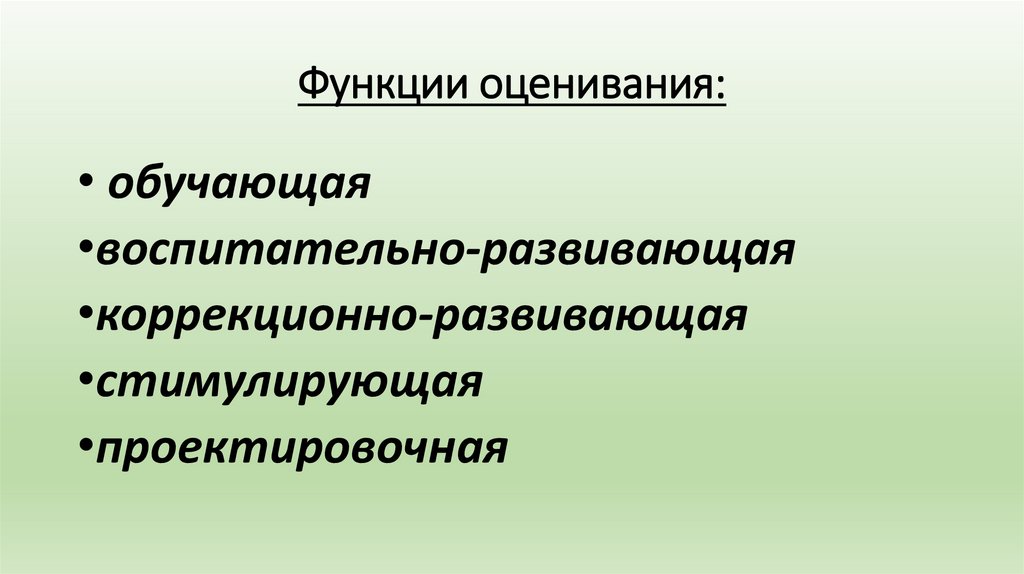 Функции оценивания:• обучающая