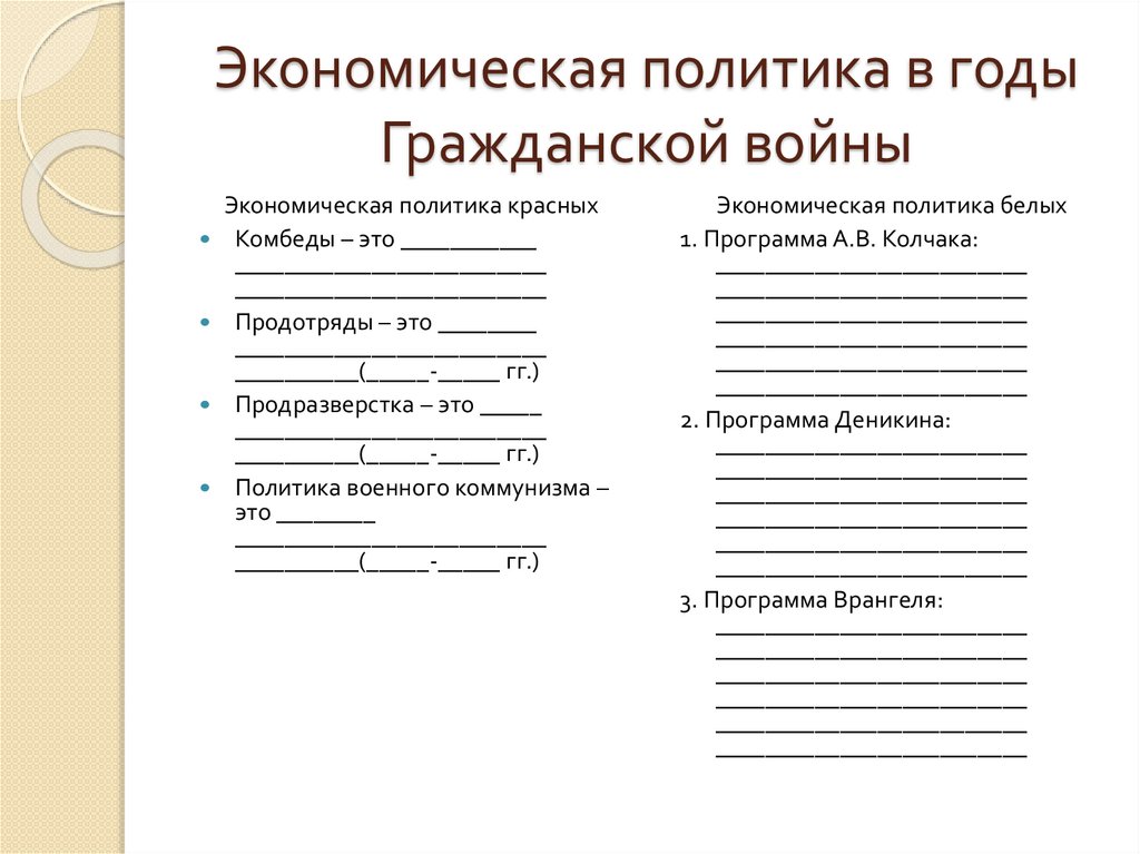 Экономическая политика в годыГражданской войны