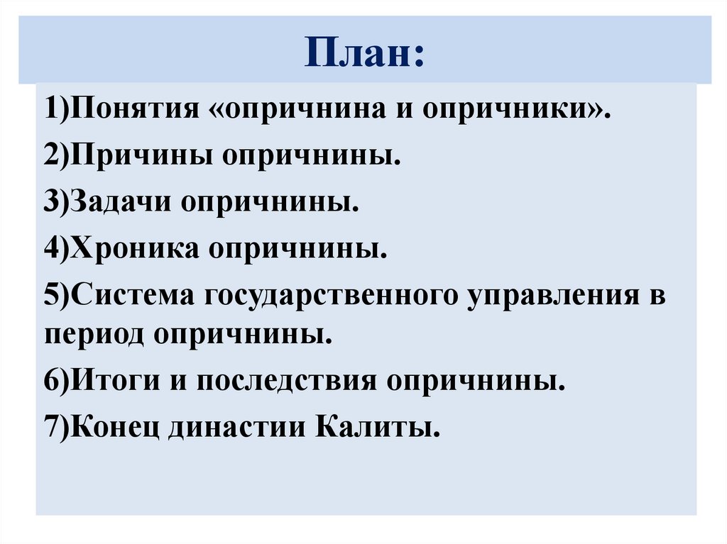 План:1)Понятия «опричнина и опричники».