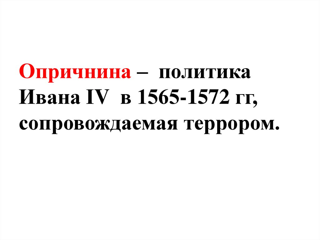 Опричнина – политикаИвана ΙV в 1565-1572 гг,