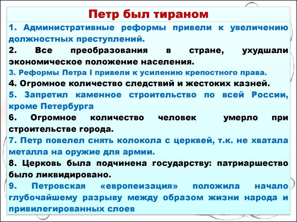 7. Петр повелел снять колокола с церквей, т.к. не хватала