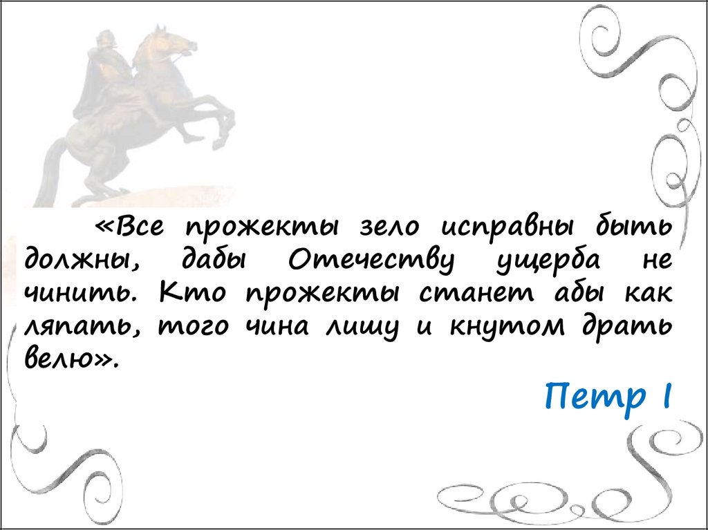 «Все прожекты зело исправны бытьдолжны, дабы Отечеству ущерба не