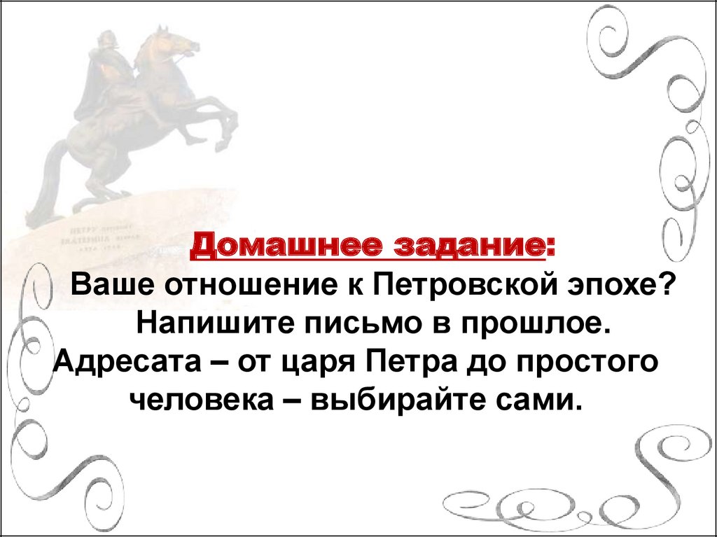 Домашнее задание:Ваше отношение к Петровской эпохе?
