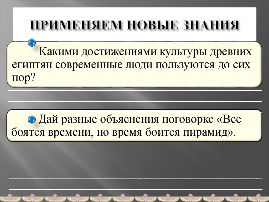 Какими достижениями культуры древнихегиптян современные люди пользуются до сих