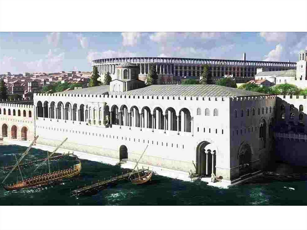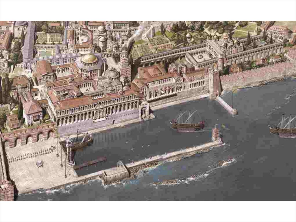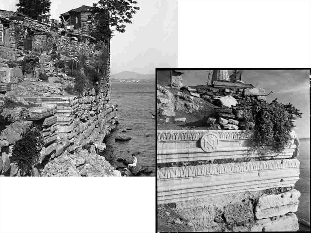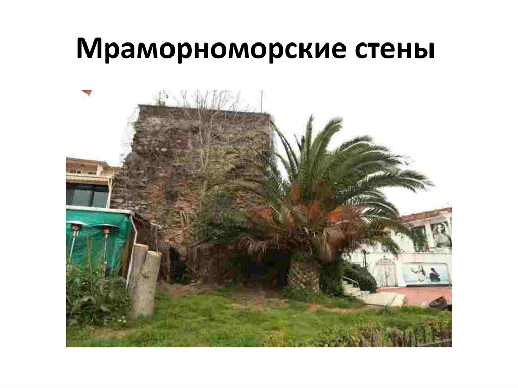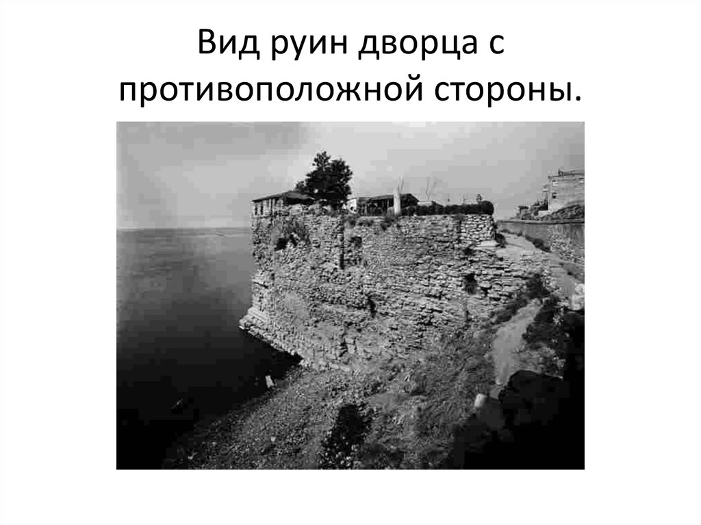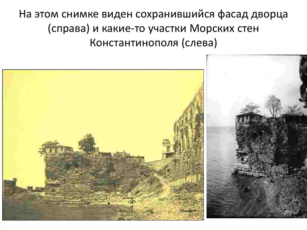 На этом снимке виден сохранившийся фасад дворца(справа) и какие-то участки Морских стен