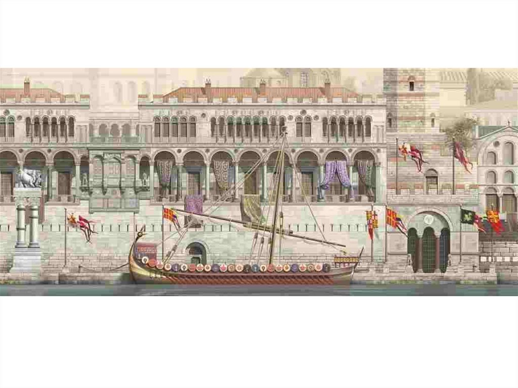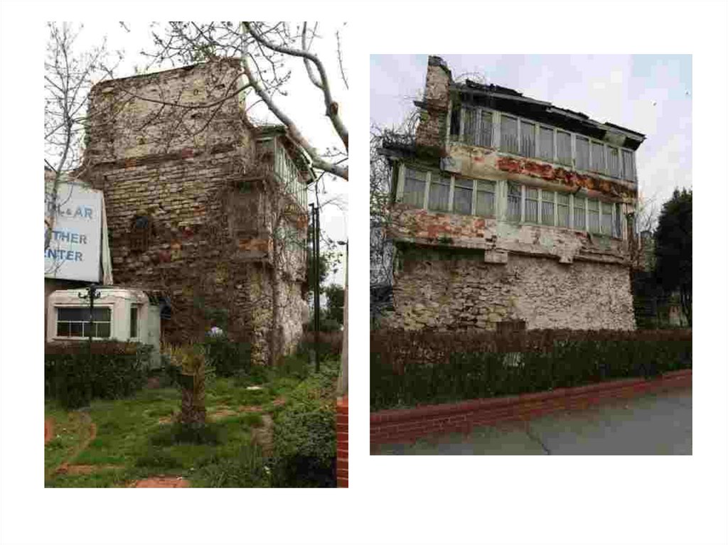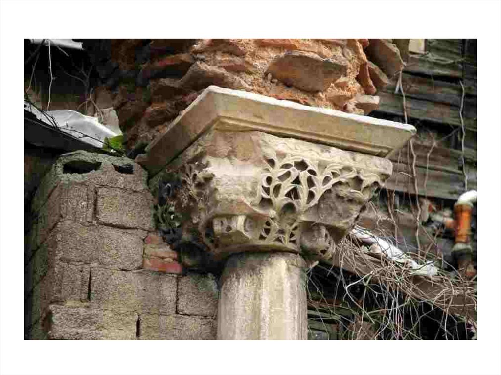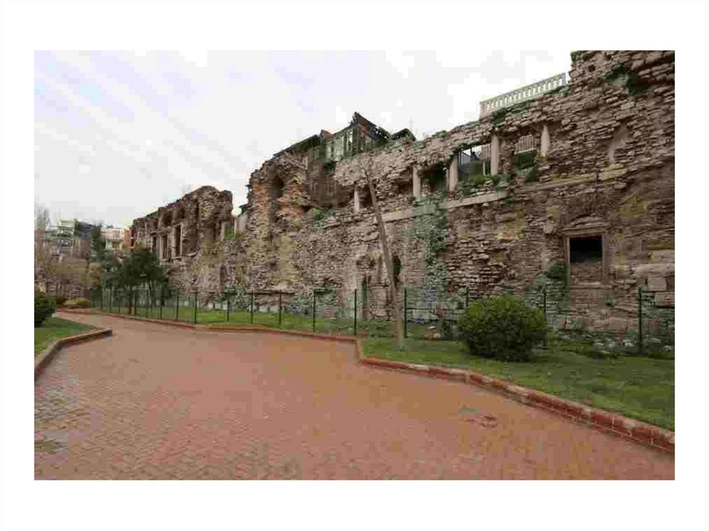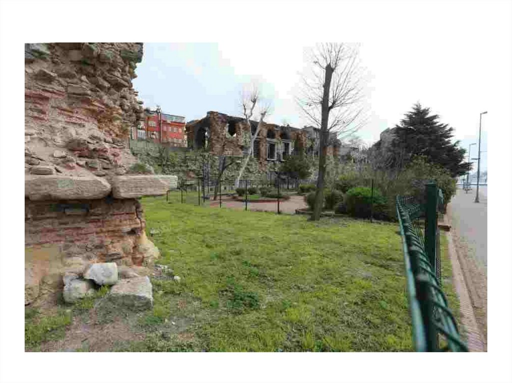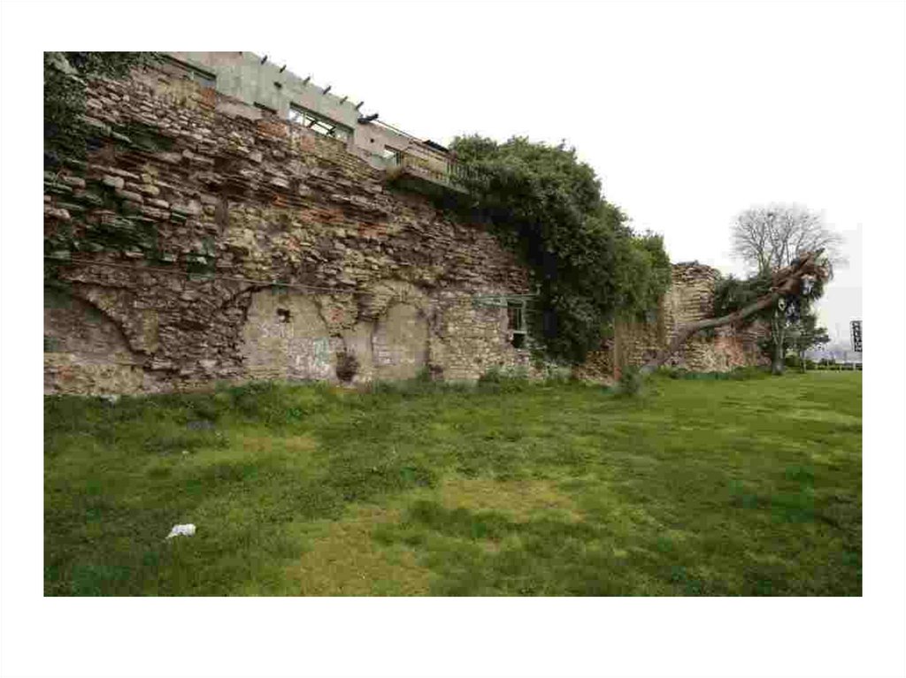 На этом снимке виден сохранившийся фасад дворца(справа) и какие-то участки Морских стен