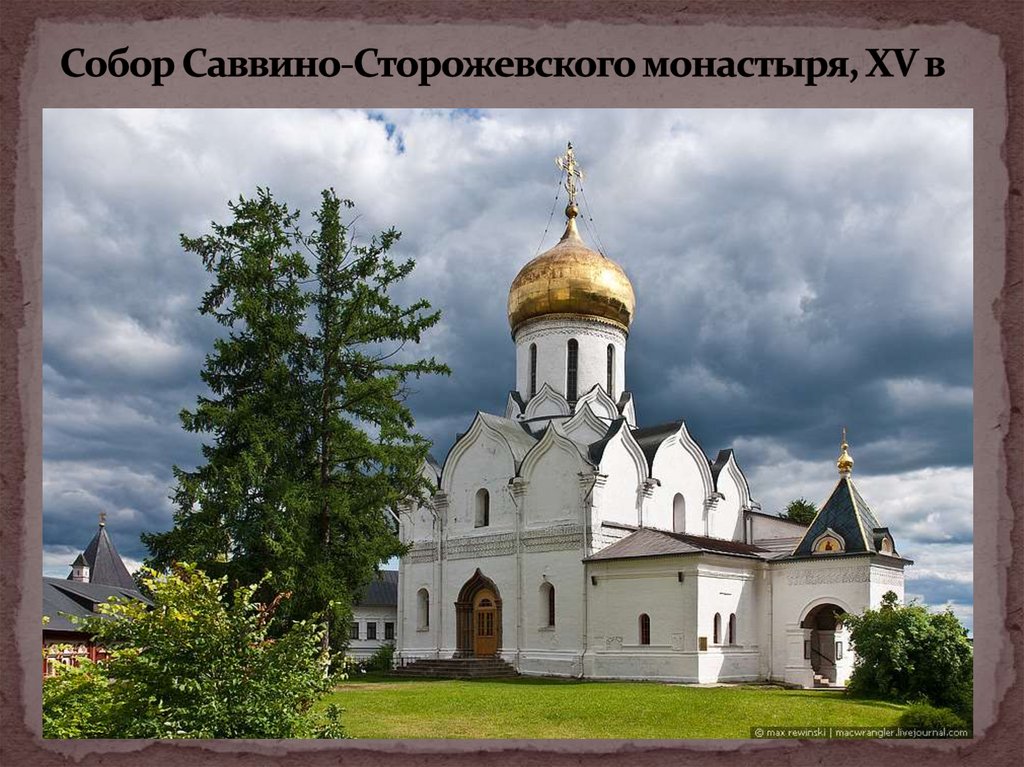 - соборы Троице-Сергиева и Саввино-Сторожевского монастырей, XVв.