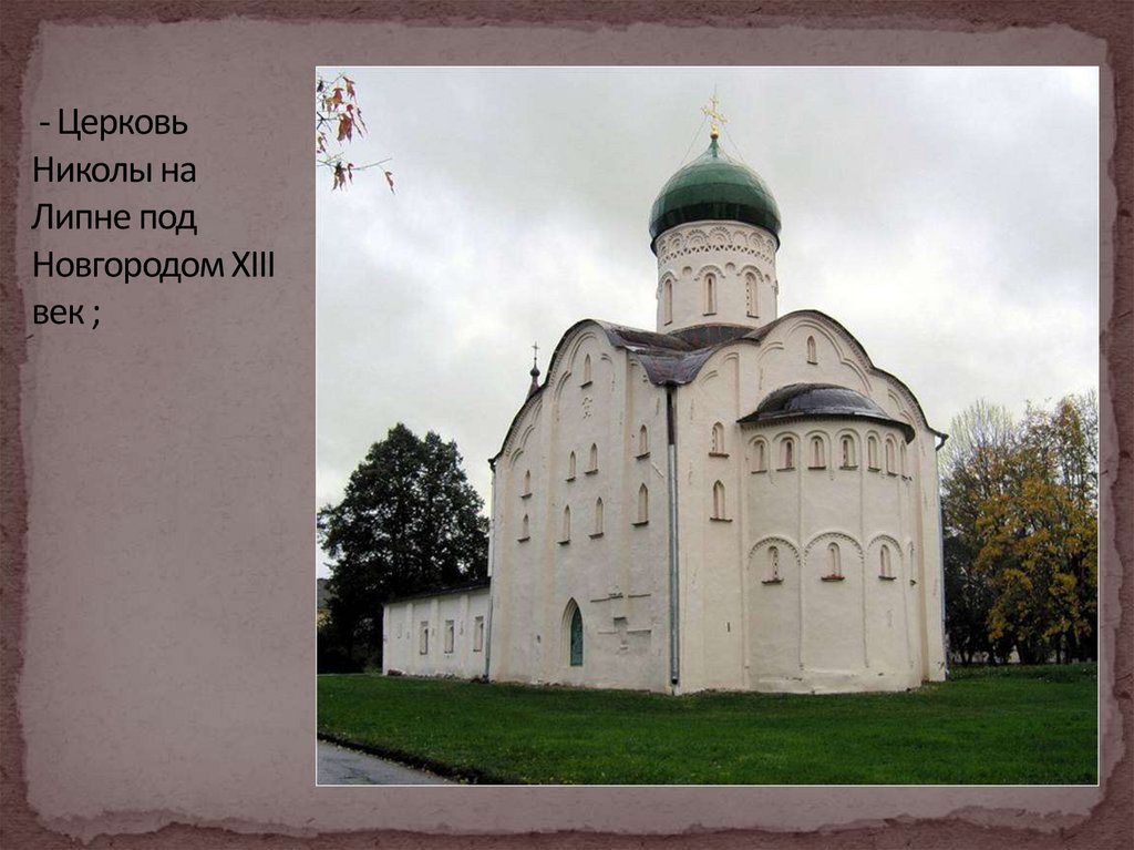 - Церковь Николы на Липне под Новгородом XIII век ;