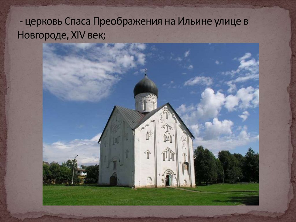- церковь Спаса Преображения на Ильине улице вНовгороде, XIV век;