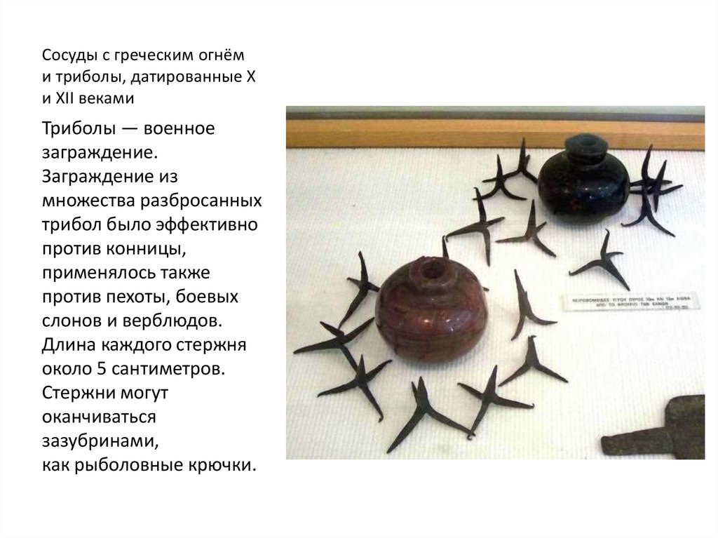 Сосуды с греческим огнёми триболы, датированные X