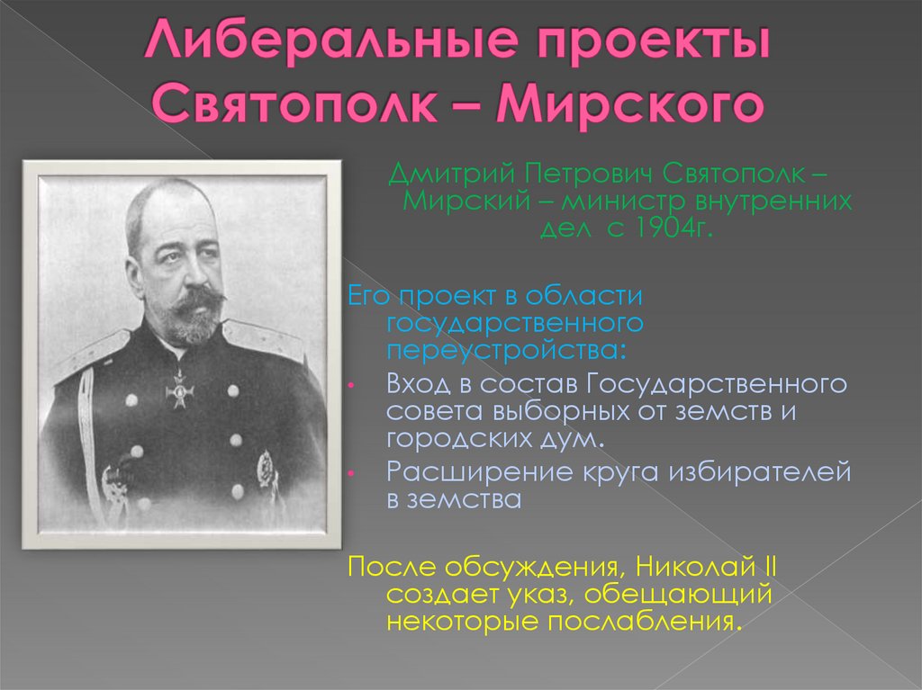 Дмитрий Петрович Святополк –Мирский – министр внутренних