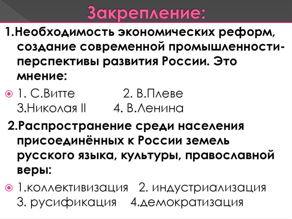 1.Необходимость экономических реформ,создание современной промышленностиперспективы развития России. Это