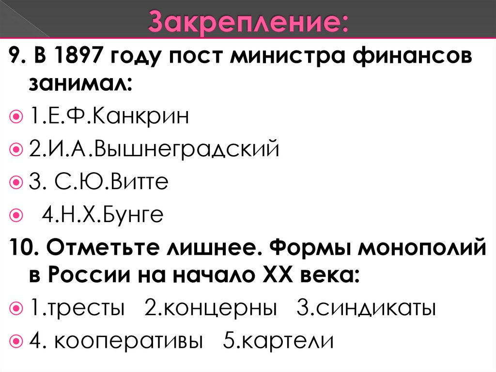 3) Каков главный результат денежной реформы С.Ю. Витте?