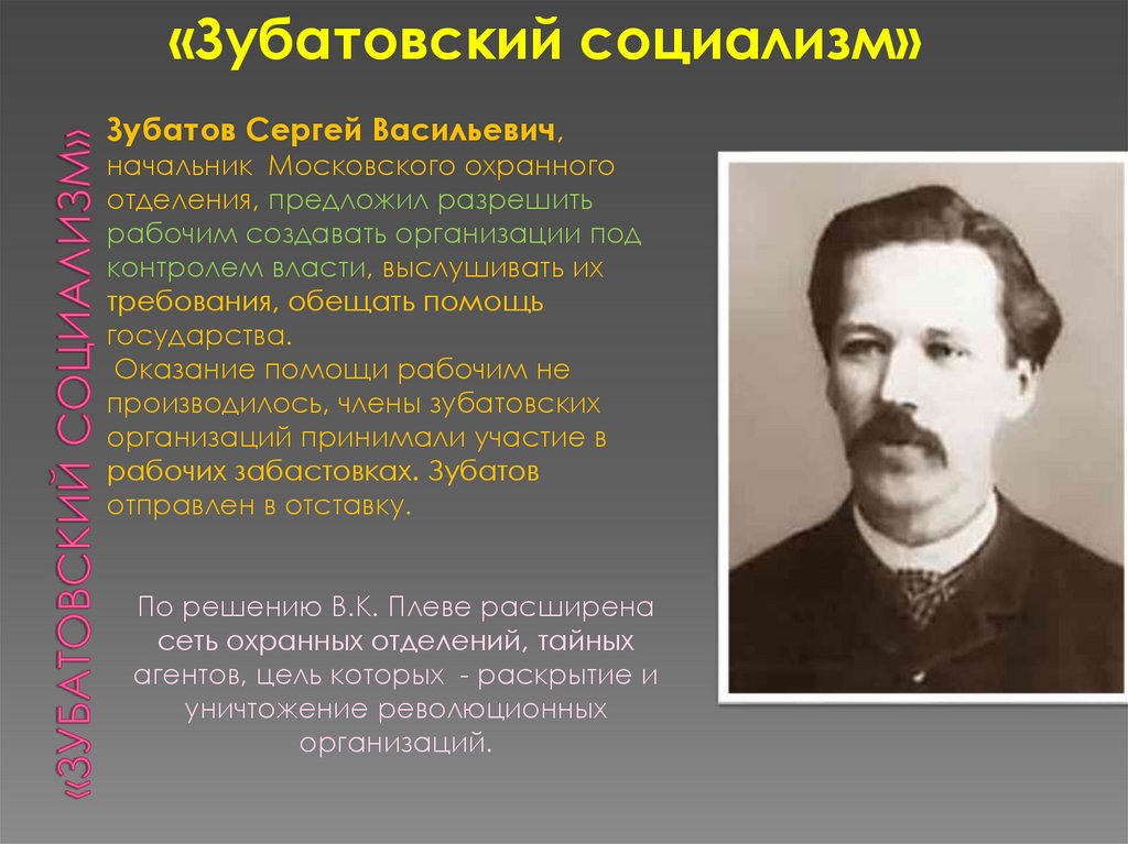 «Зубатовский социализм»Зубатов Сергей Васильевич,
