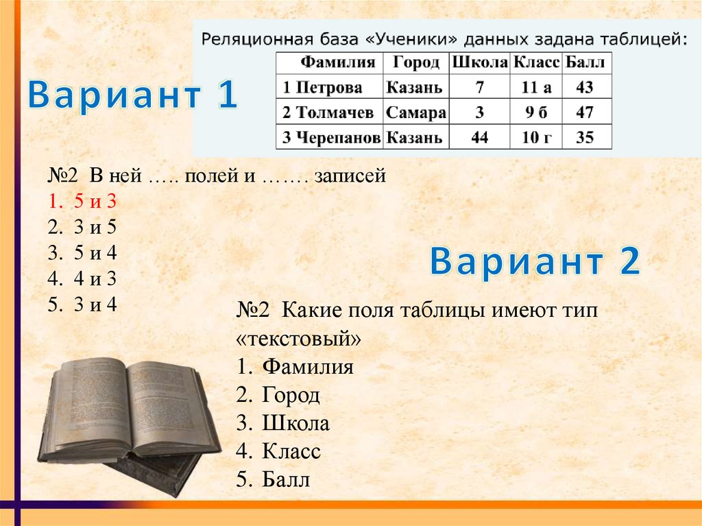 №2 В ней ….. полей и ……. записей1. 5 и 3