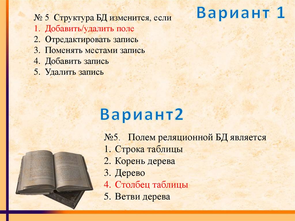№ 5 Структура БД изменится, если1. Добавить/удалить поле