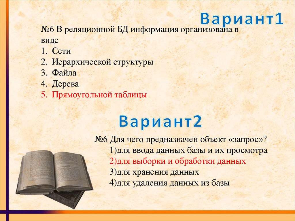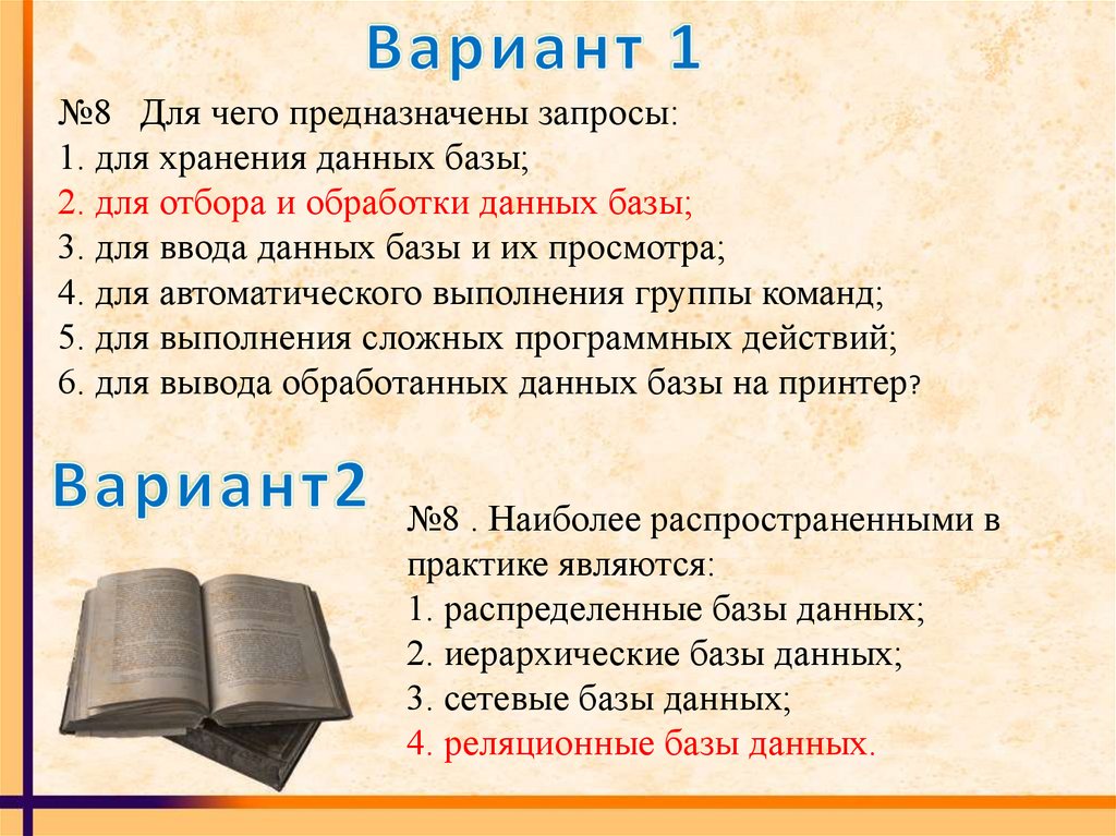 №8 Для чего предназначены запросы:1. для хранения данных базы;