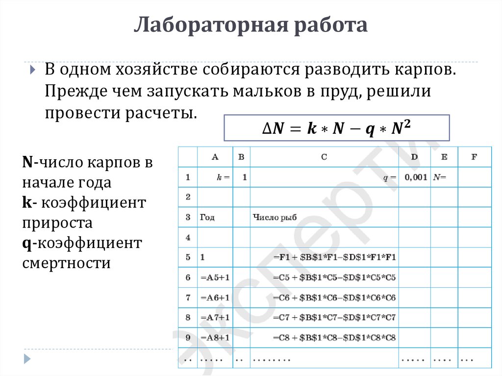 Математическое моделирование с использованием электронных таблиц