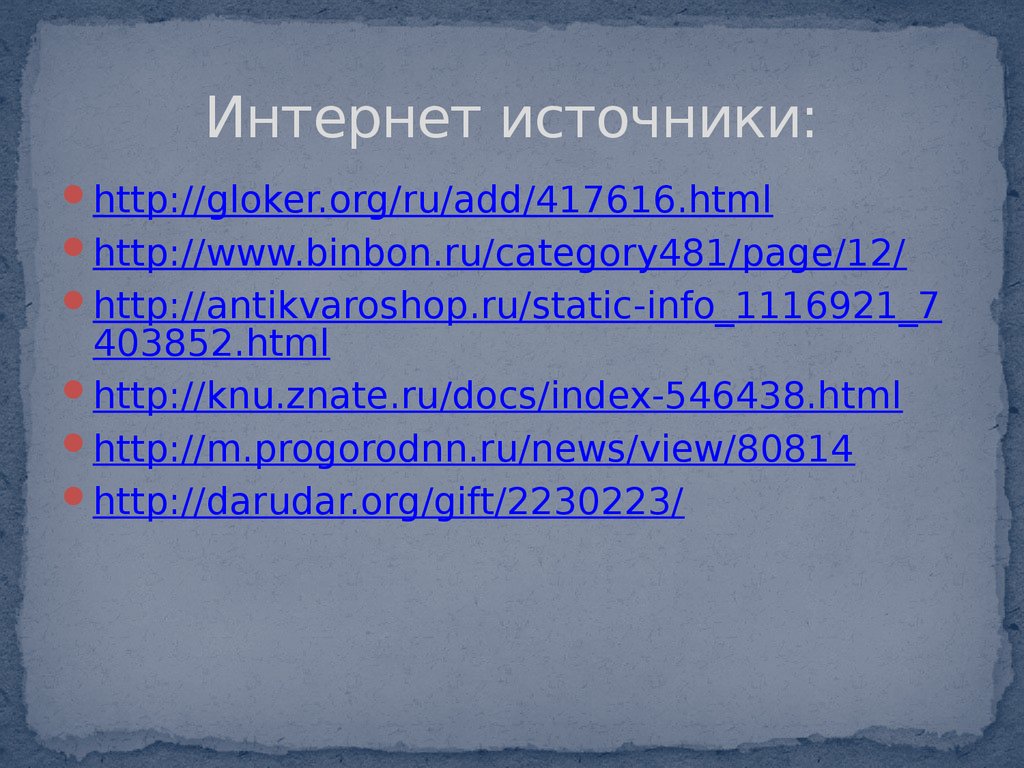 Интернет источники:http://gloker.org/ru/add/417616.html