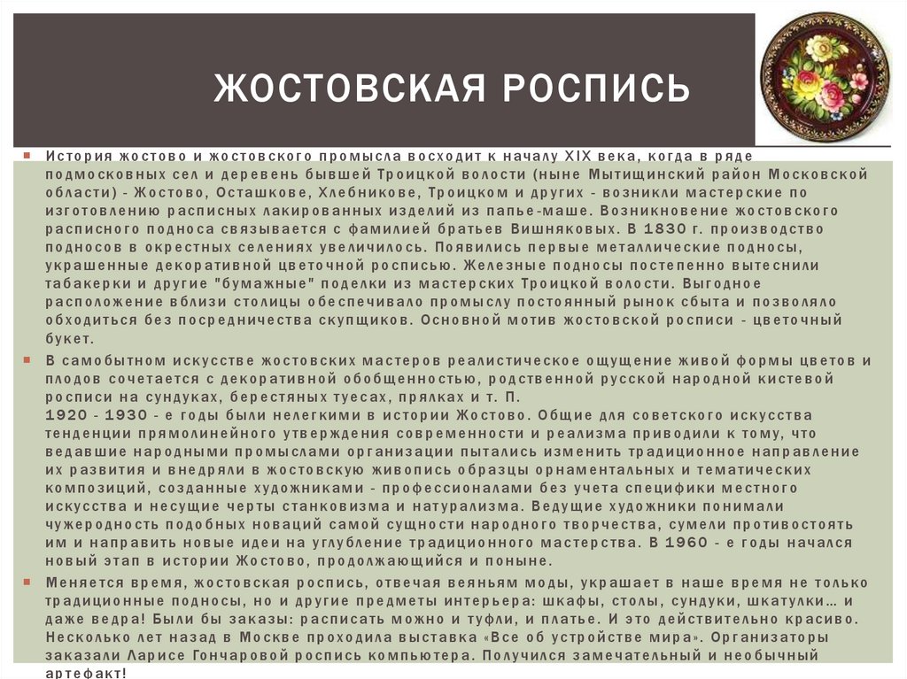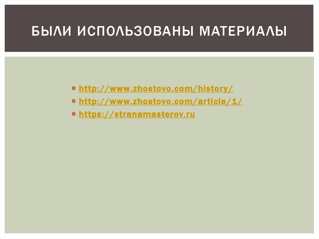 БЫЛИ ИСПОЛЬЗОВАНЫ МАТЕРИА ЛЫhttp://www.zhostovo.com/history /