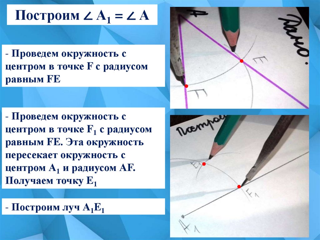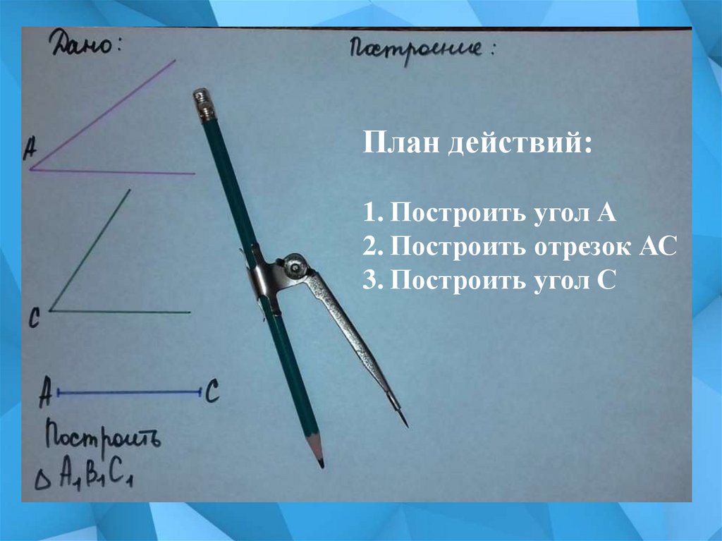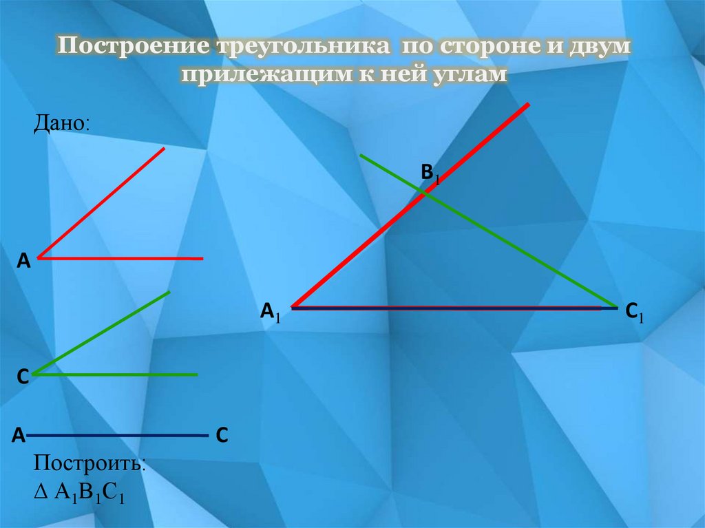 Построение треугольника по стороне и двумприлежащим к ней углам