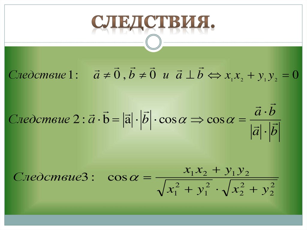 Следствие 1 :a 0 , b 0 и a b x1 x 2 y1 y 2 0