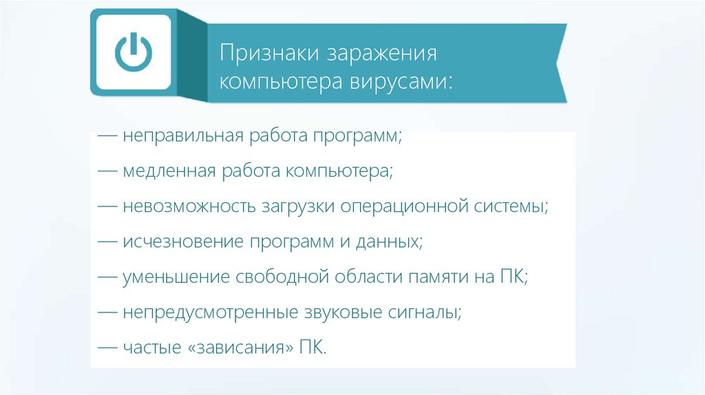 Признаки заражениякомпьютера вирусами: