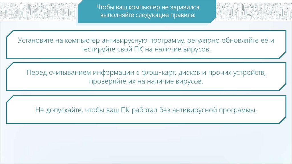 Чтобы ваш компьютер не заразилсявыполняйте следующие правила: