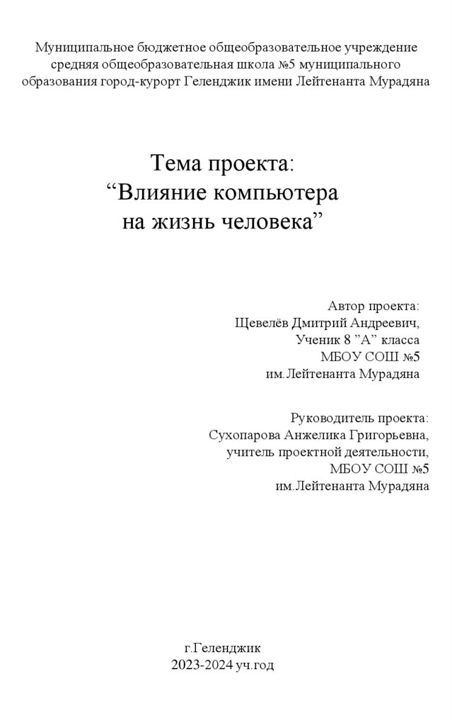 ВведениеПроблема влияния компьютера на жизнь человека всё