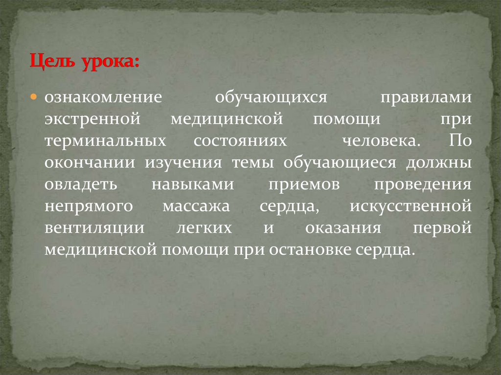 5. Ход урока. Терминальные (конечные ) состояния человека