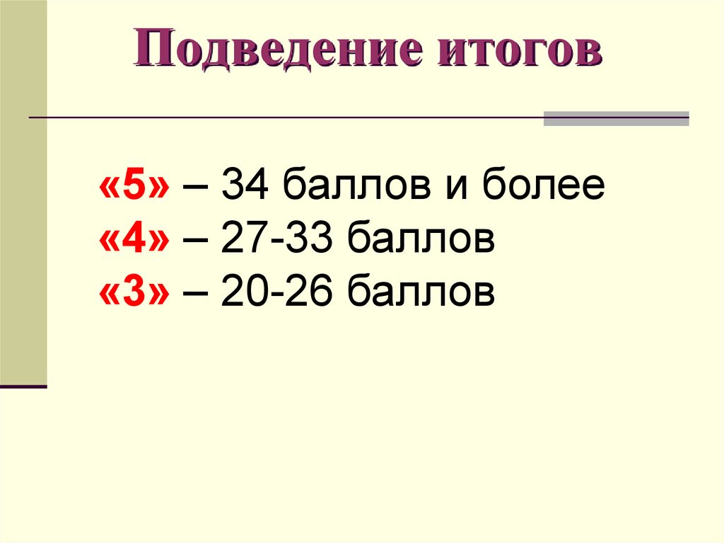 Подведение итогов«5» – 34 баллов и более