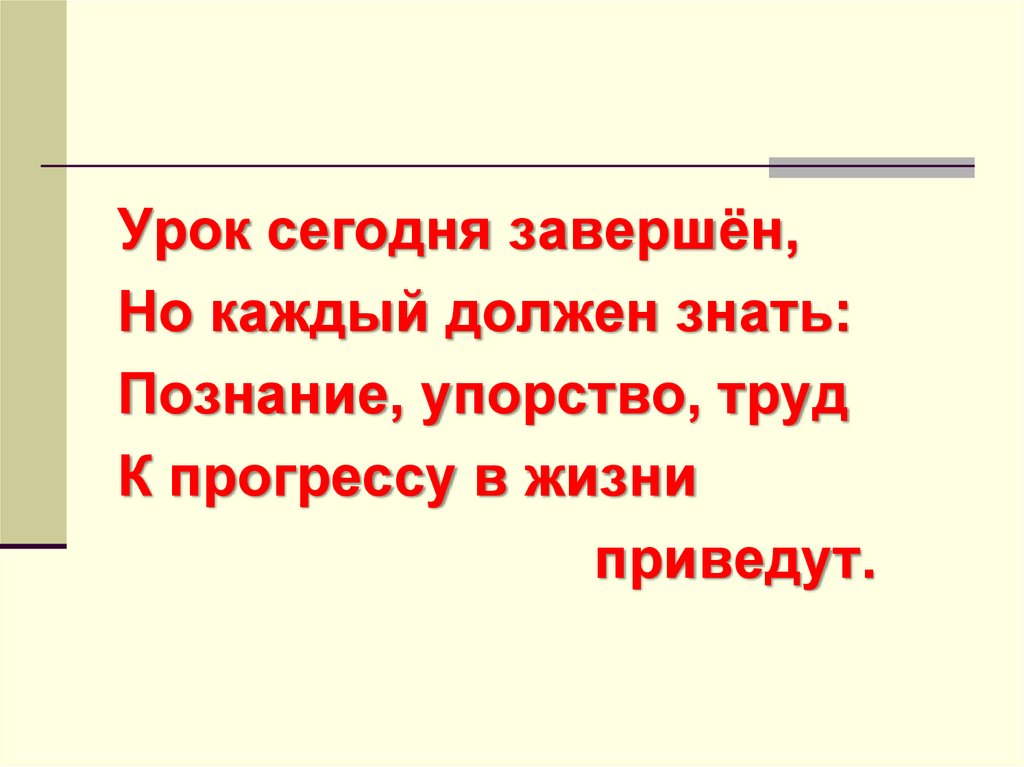 Урок сегодня завершён,Но каждый должен знать: