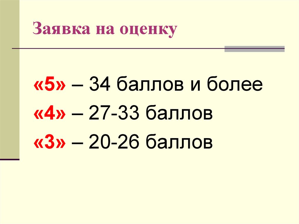 Заявка на оценку«5» – 34 баллов и более