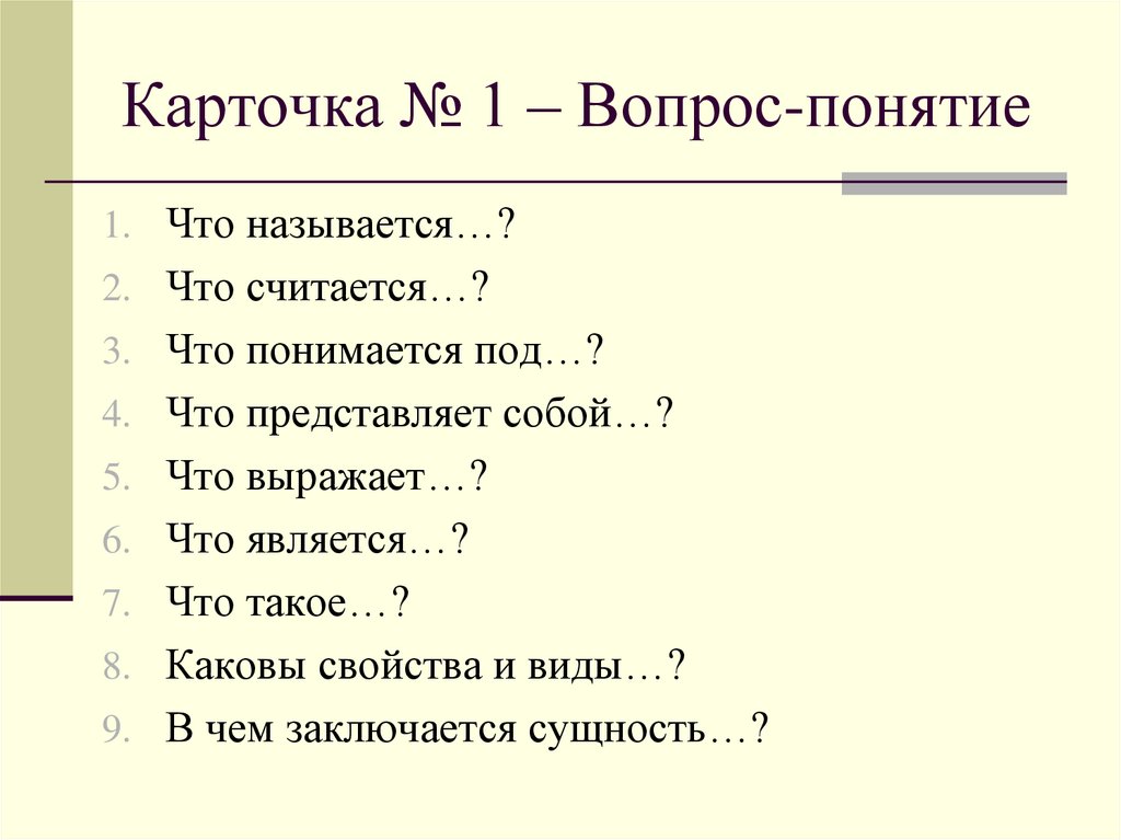 Карточка № 1 – Вопрос-понятие1. Что называется…?